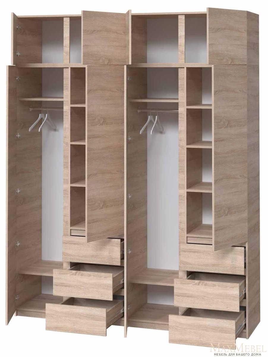 Висота шафи, мм: 2400 Глибина шафи, мм: 520 Кількість зовнішніх висувних ящиків, шт: 6 Кількість дзеркал, шт: 1 Кількість стулок (дверей), шт: 8 Наявність дзеркала: на зовнішній стороні фасаду Стан: Новий Тип напрямних для висувних ящиків: Телескопічні (кулькові) Фасади: ламінована ДСП Ширина шафи, мм: 2000 Штанга для одягу, шт: 2 Вага, кг: 237 Корпус (каркас): ламінована ДСП Матеріал корпусу: Ламінована ДСП Призначення: Для дому Тип меблів: шафа > Колір: Дуб сонома Придбайте цю стильну та сучасну шафу - ідеальне поєднання стилю та функціональності!Сучасна шафа з дзеркалом та антресоллю з ламінованого ДСП - стане стандартним рішенням для зберігання одягу та речей. Строгий дизайн без ручок надає меблям мінімалістичний вигляд, а компактні розміри дозволяють вписати шафу в будь-який простір. Надійні конструкції та внутрішні відділення роблять його ідеальним для акуратного зберігання особистих речей, при цьому він легко поєднується з будь-яким інтер'єром, додаючи гармонії та порядку. Характеристики: Особливості: