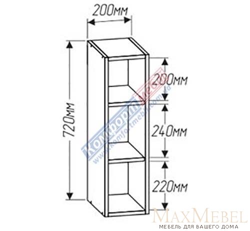 ширина: 200 мм висота: 720 мм глибина: 320 мм матеріал корпусу: ЛДСП, края обклеєні пластиковою кромкою ПВХ 0,45 мм