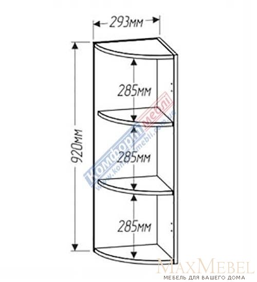 Головна › Кухні › Кухні модульні › Кухня Фарбований високий глянець (Комфорт) ЛДСП › Шафа верхній В30.92 кут. відкритий "Фарбований високий глянець" |