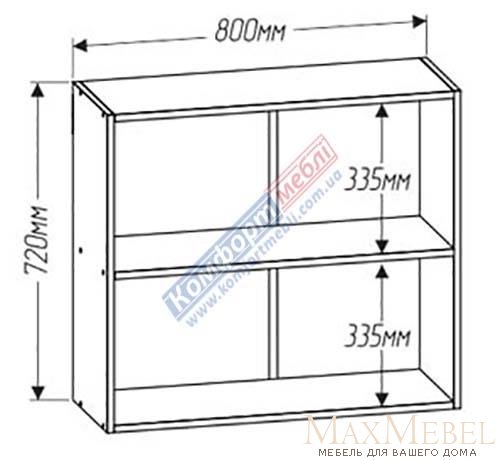 ширина: 800 мм висота: 720 мм глибина: 320 мм матеріал корпусу: ЛДСП, края обклеєні пластиковою кромкою ПВХ 0,45 мм