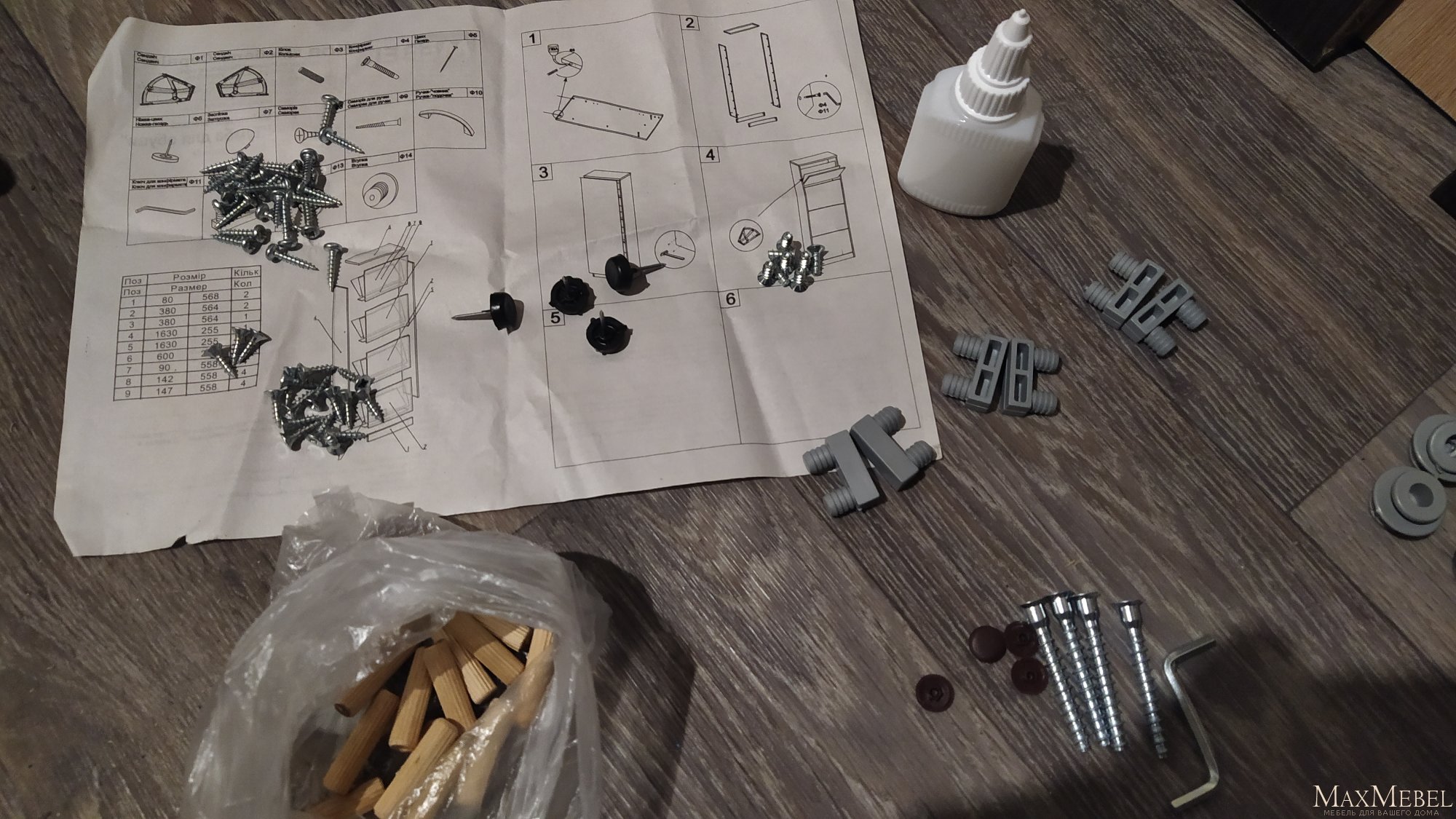 Плюсы: В комплекте не хватало 6-саморезов для полок и двух пластиковых ограничителей открывания, вместо которых лежали 4 деревянных штифта. Новая почта помимо цены которая составила (497грн), раздавила две части механизма открывания. Причём если ты механизмы эти никогда не устанавливал, то сразу при осмотре ты этого и не увидишь, посмотрел посчитал но фактически хоть собирай на новой почте :(:(:(.