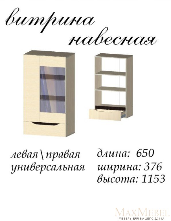 Главная › Модульная мебель › Мастер-Форм › Аякс › Витрина "Аякс" навесная 650х376х1153 h . Дуб сонома / Венге магия |